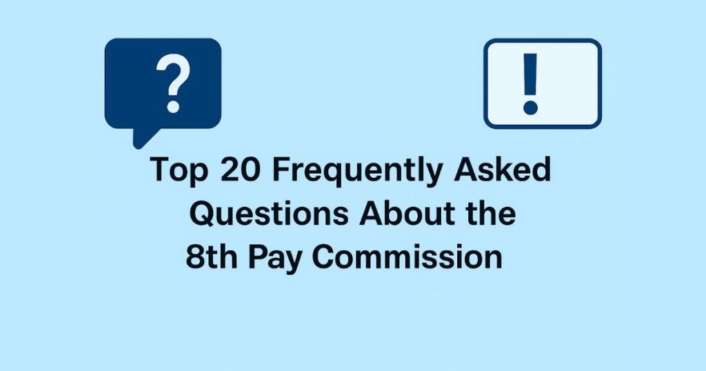 The 8th Pay Commission is highly anticipated by lakhs of Central Government employees and pensioners in India. As salary revisions under the 7th Pay Commission gradually feel outdated due to inflation and rising costs of living, expectations from the 8th CPC (Central Pay Commission) are growing. In this blog post, we answer the 20 most frequently asked questions about the 8th Pay Commission, offering a clear and complete guide for anyone seeking accurate and trustworthy information.